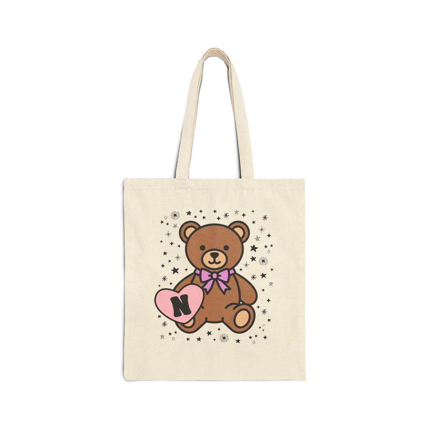 N: Bear Holding a Heart Tote Bag with Initial