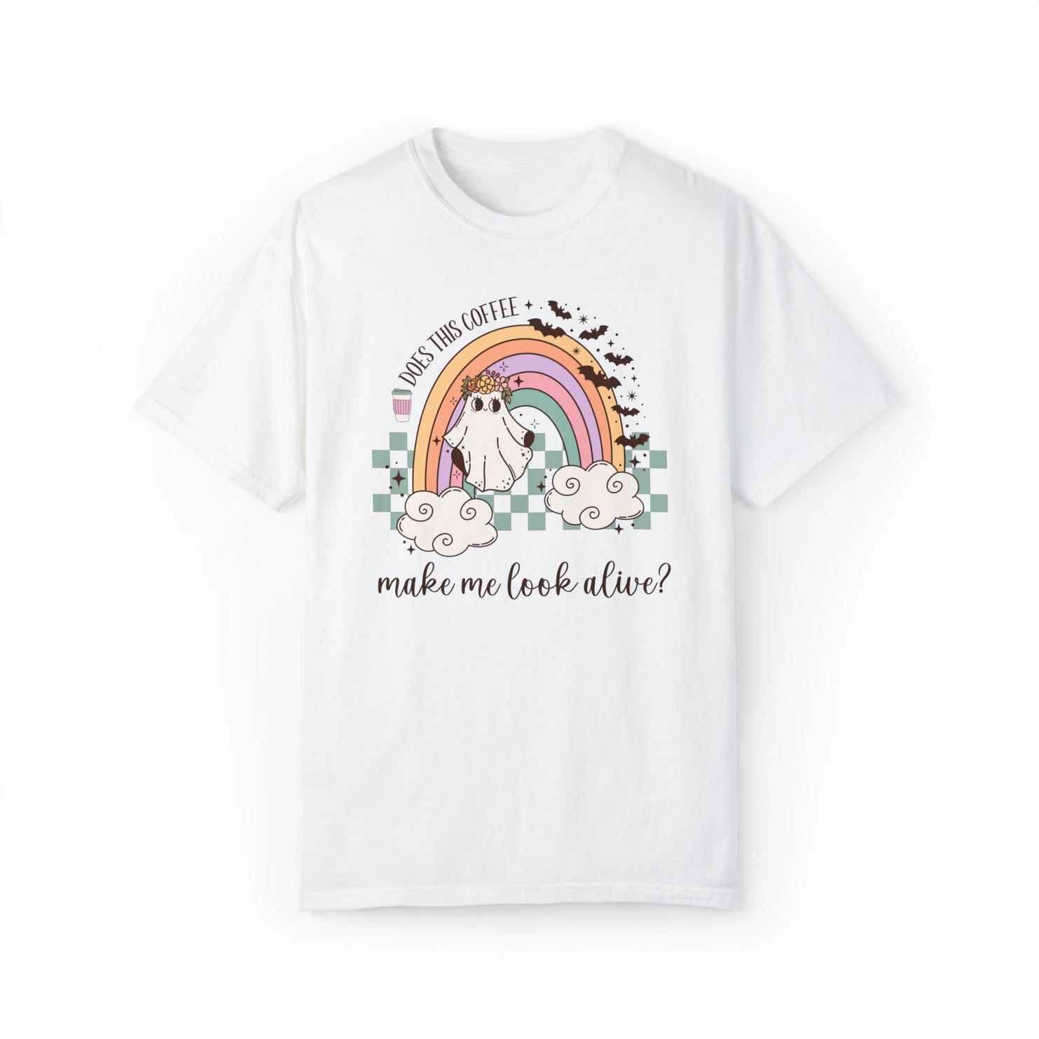 Tee Shirt: Adorable Floral Ghost Coffee