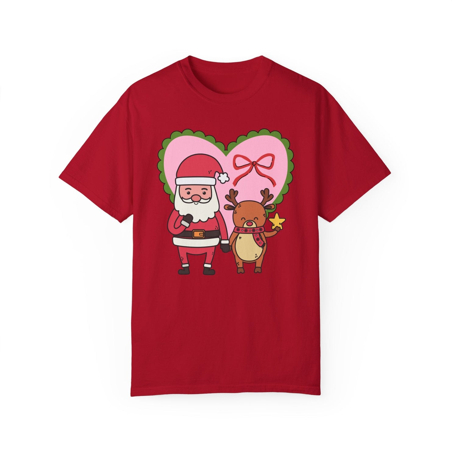 Tee: Coquette Christmas Bow with Santa and Reindeer