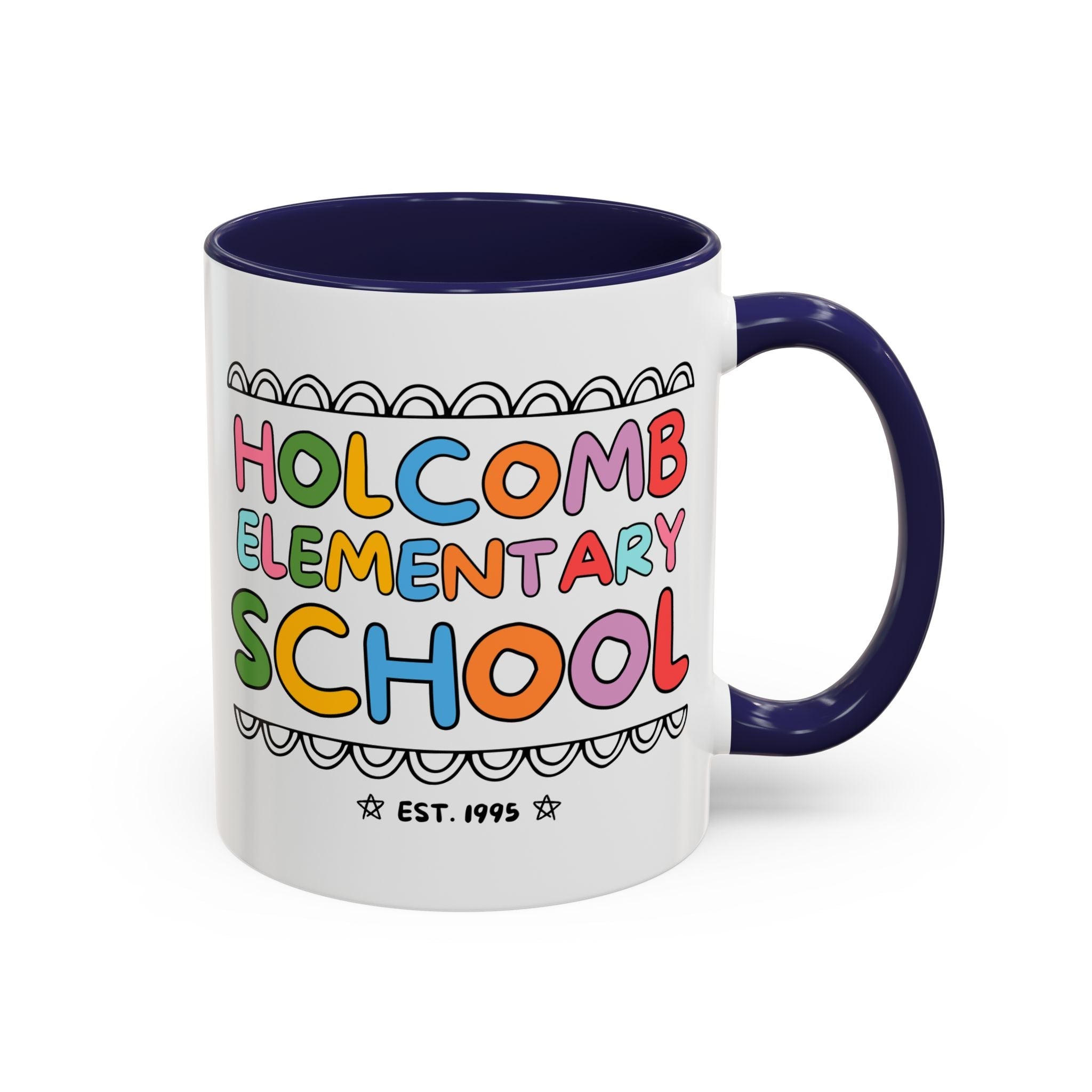 Holcomb Elementary School Coffee Mug: Rainbow Letters | FPS + Opal and June 11 Oz Coffee Mug, Fayetteville Public Schools