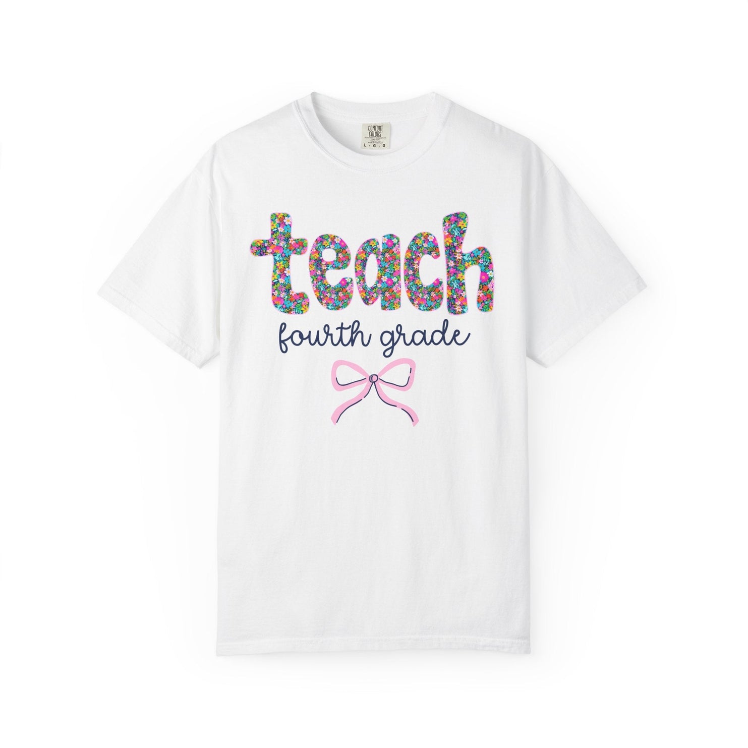 Fourth Grade Teacher Tee Shirt with Colorful Flowers and Bow