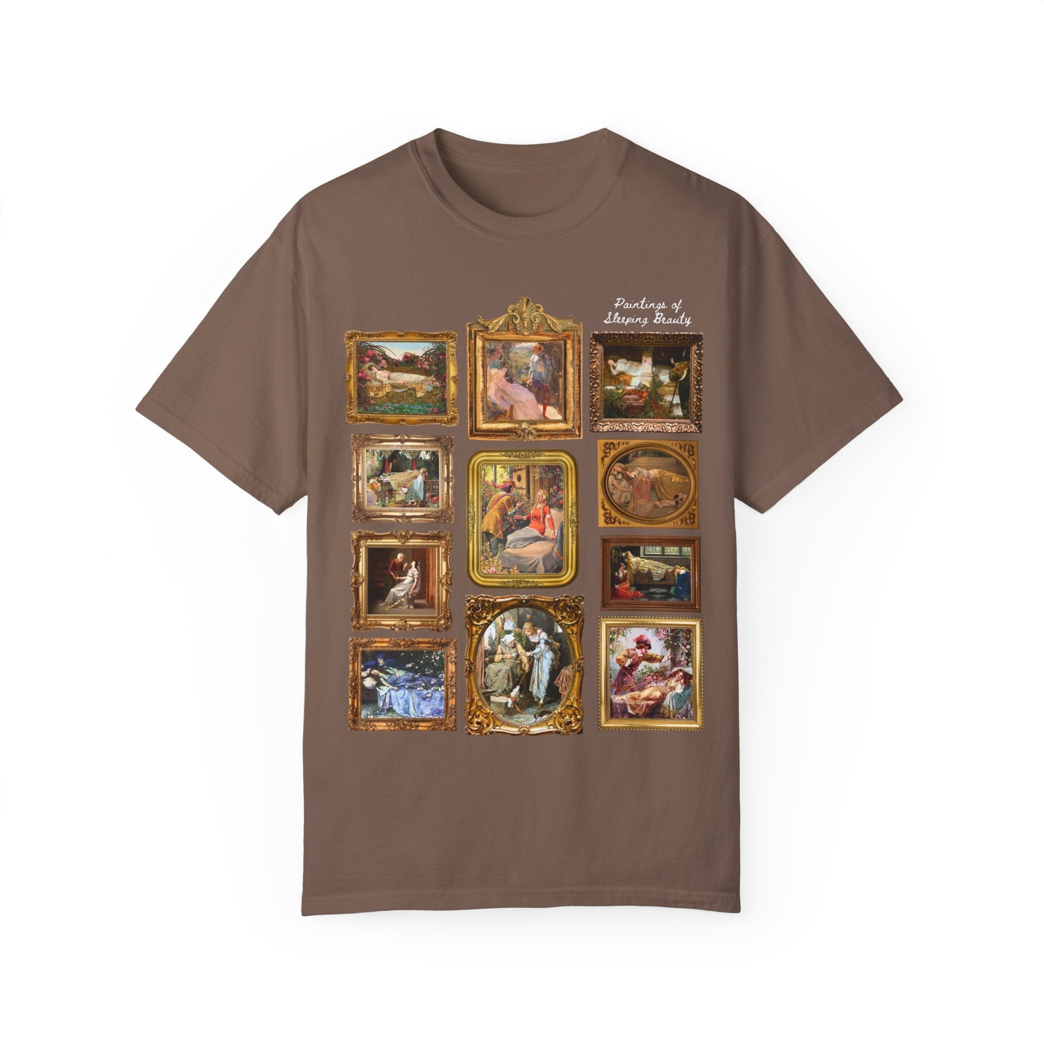 European Folklore 19th Century Art Tee with Paintings of Sleeping Beauty, Charles Perrault, Brothers Grimm