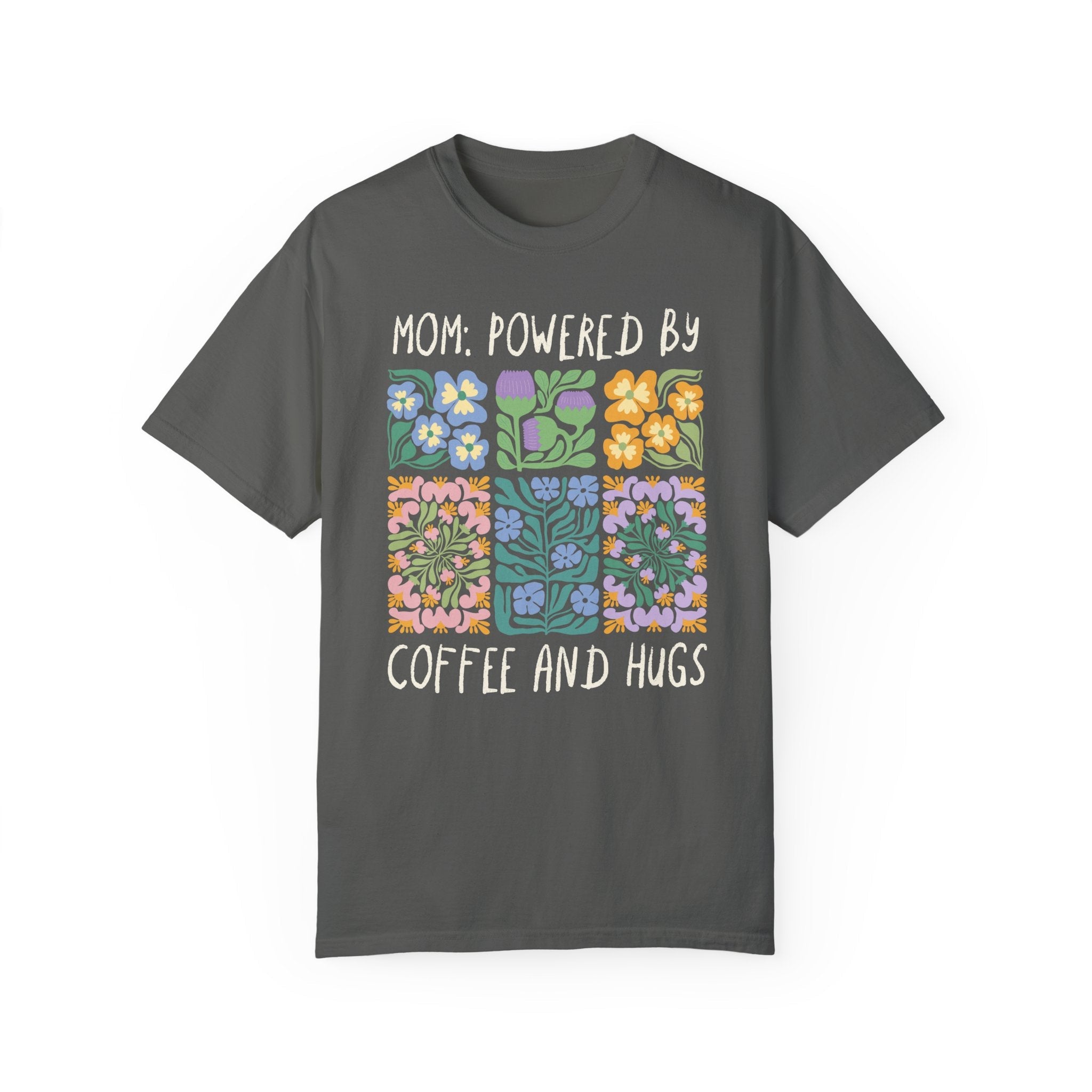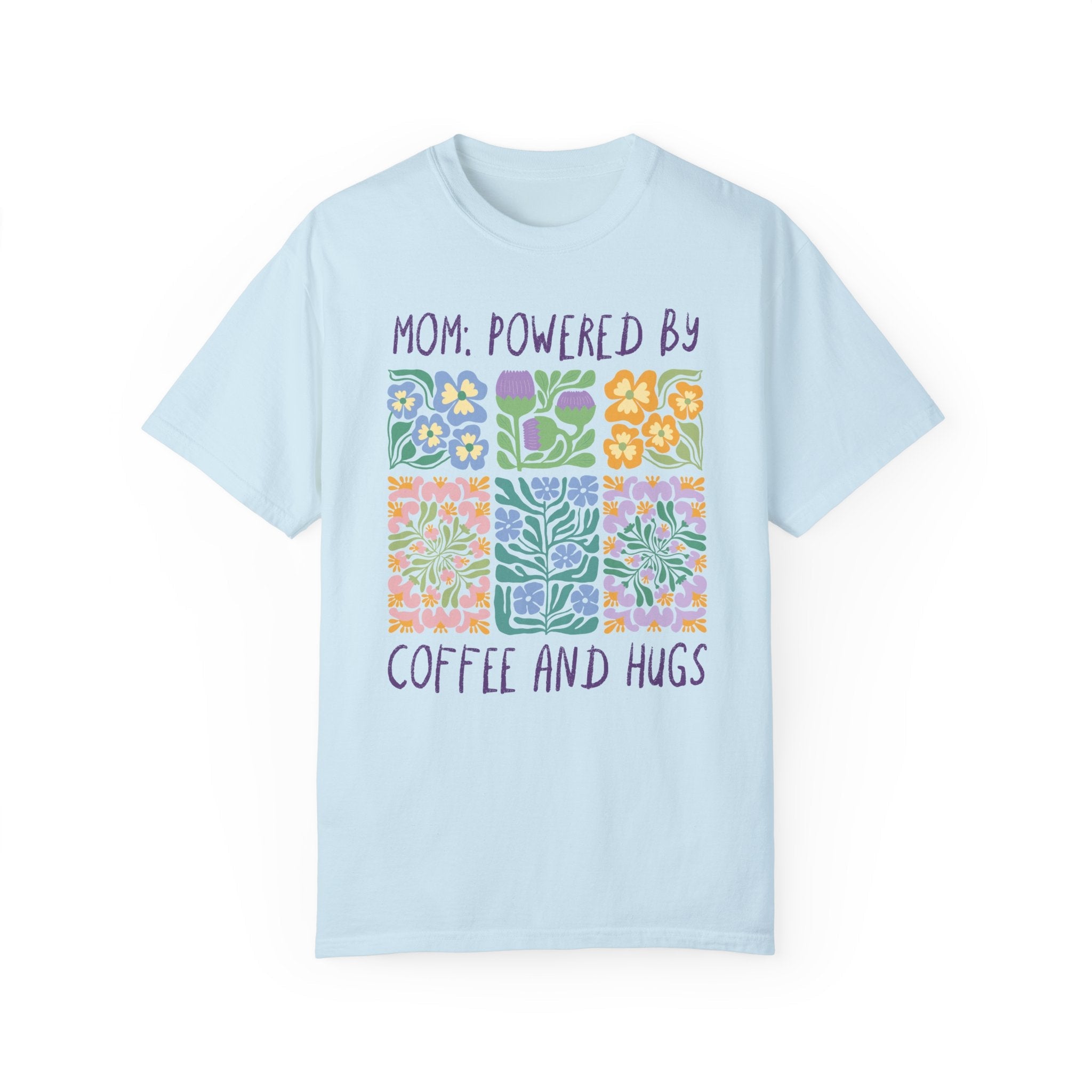 T-Shirt for New Mama or Pregnant Sister Who Loves Coffee and Flowers: Powered by Coffee and Hugs
