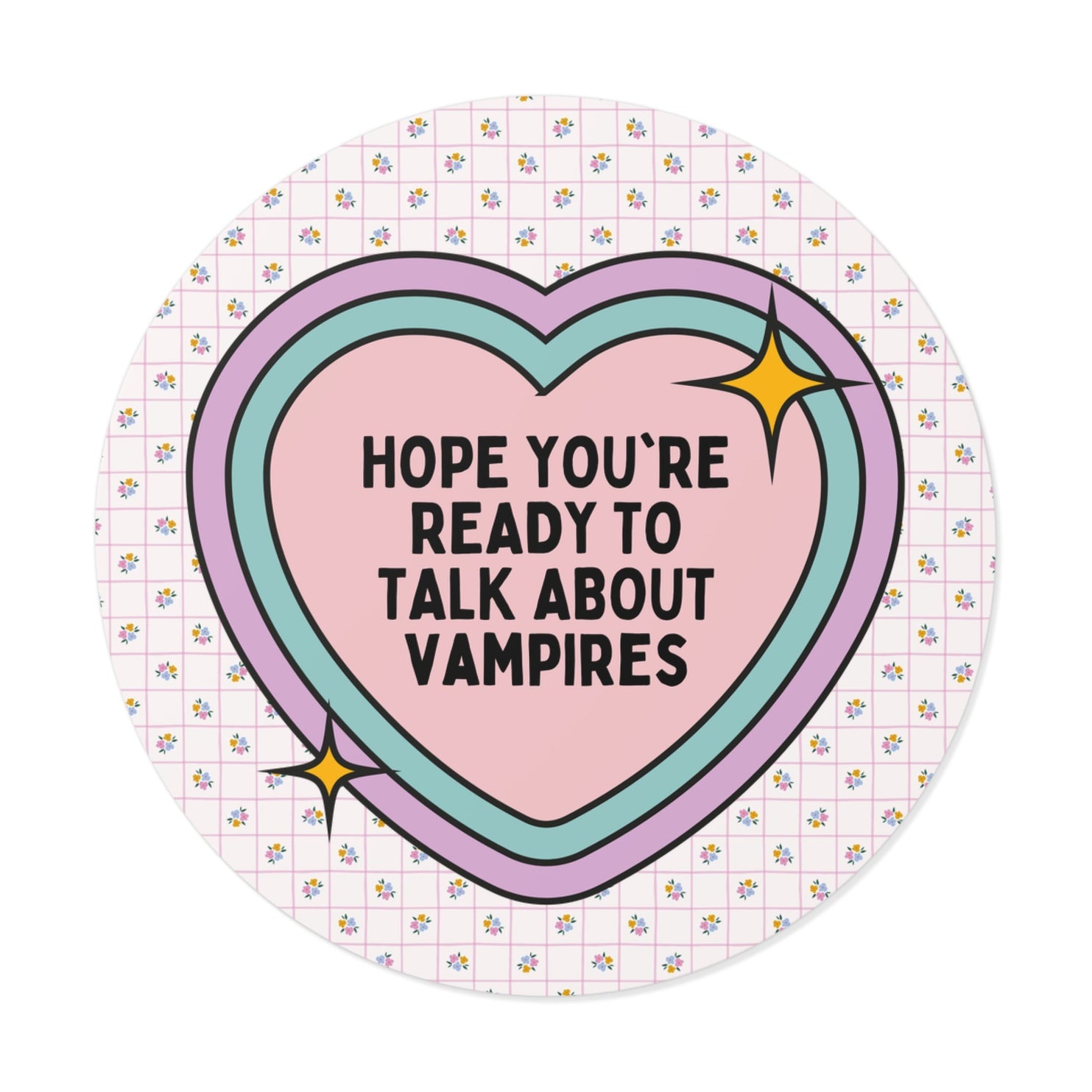 Paranormal Vampire Halloween Sticker with Cute Rainbow Heart: Hope You're Ready to Talk About Vampires