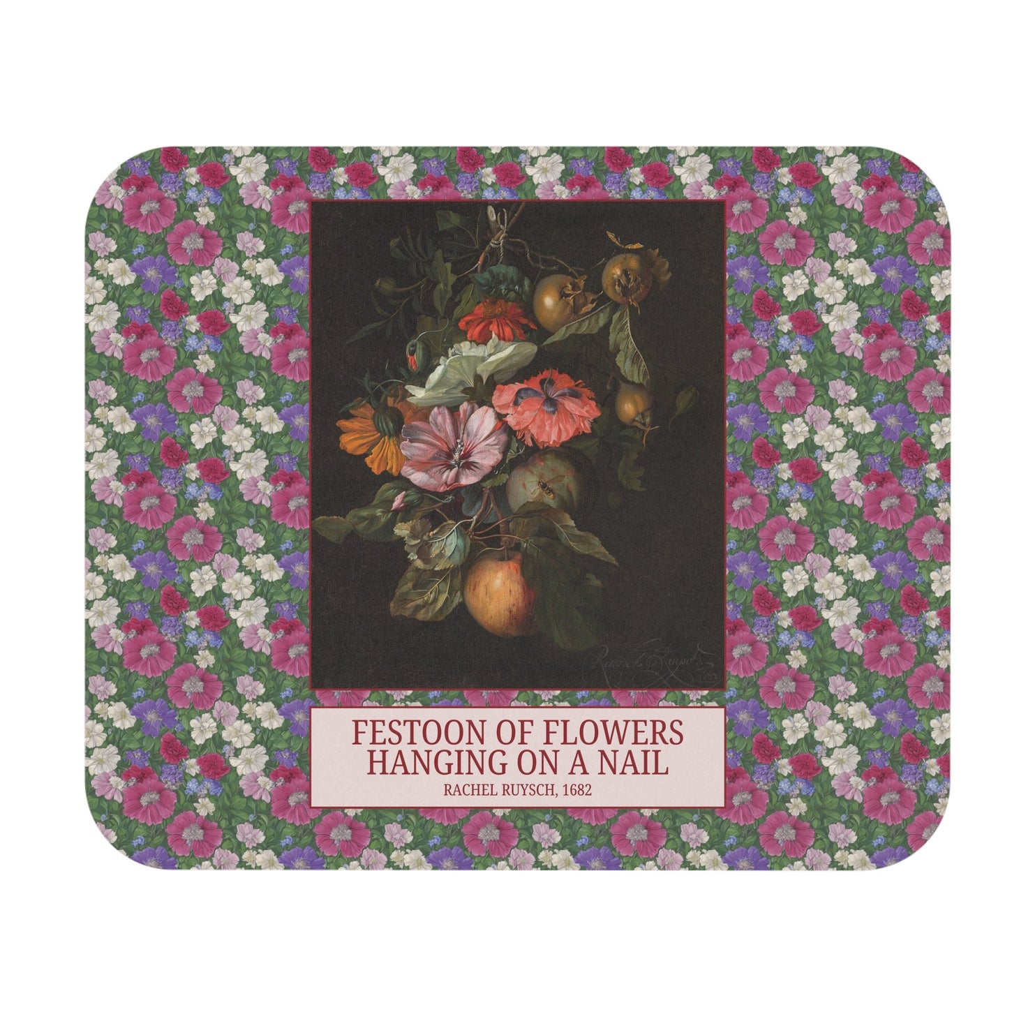 Festoon of Flowers Hanging on a Nail by Rachel Ruysch | Dutch Floral Still Life Mousepad