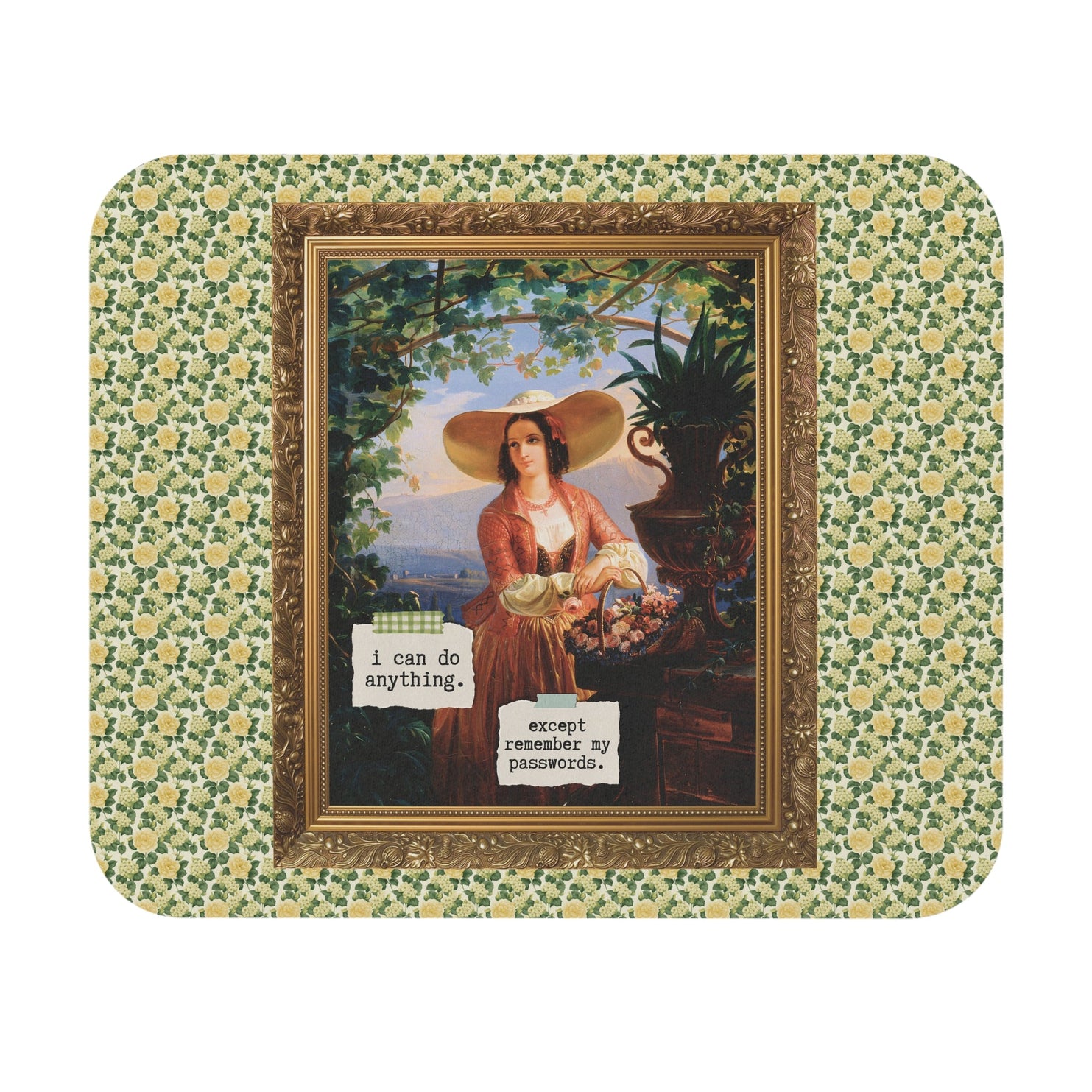 Funny Art History Mousepad for Friend Who Always Forgets Password | Italian Flower Girl Painting by Robert Wilhelm Ekman