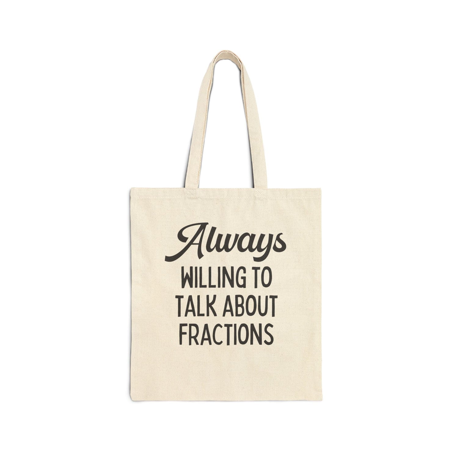 Funny Math Teacher Tote Bag for Math Professor or Math Major: Always Willing To Talk About Fractions