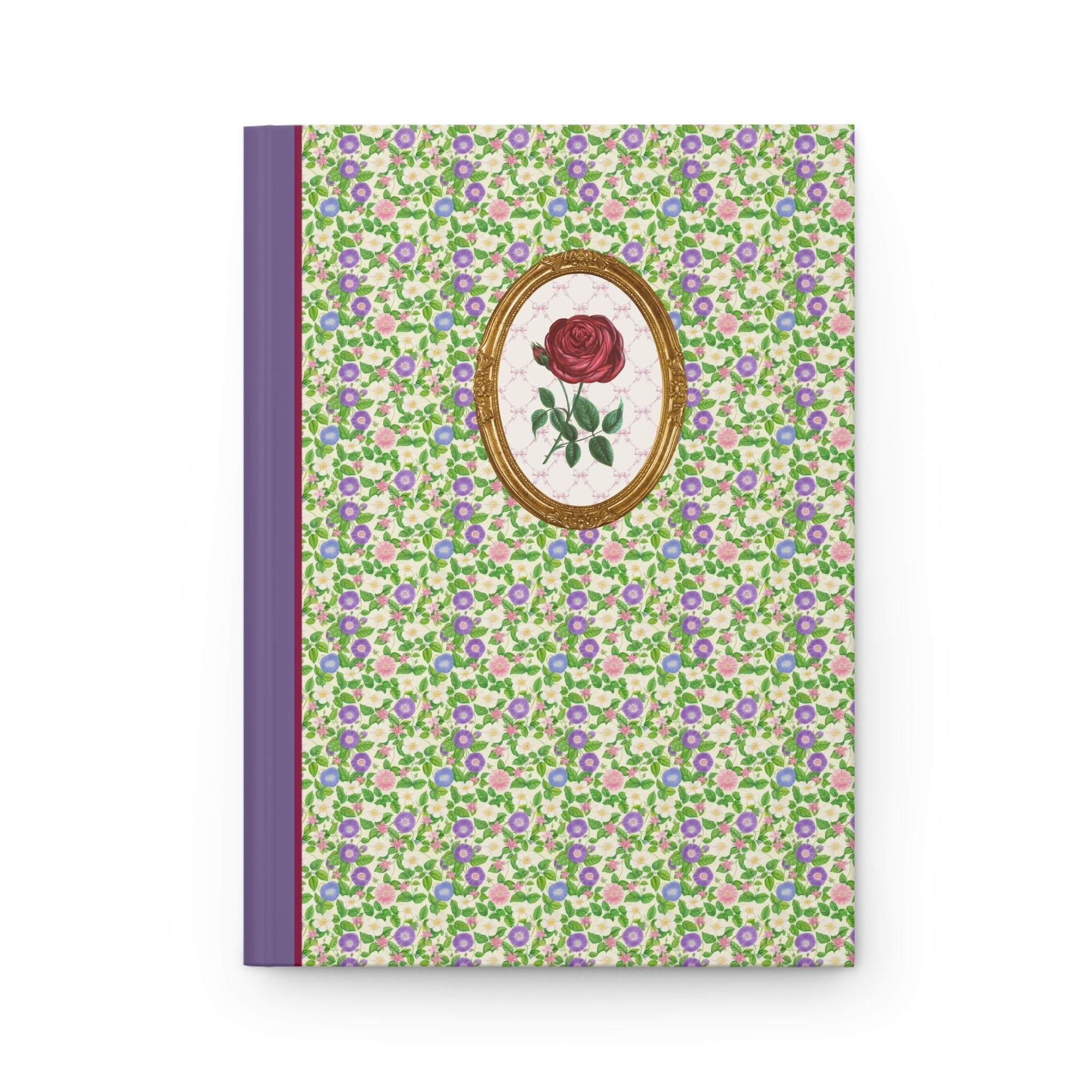 Classic Rose Journal with Green Flower Pattern and Purple Spine