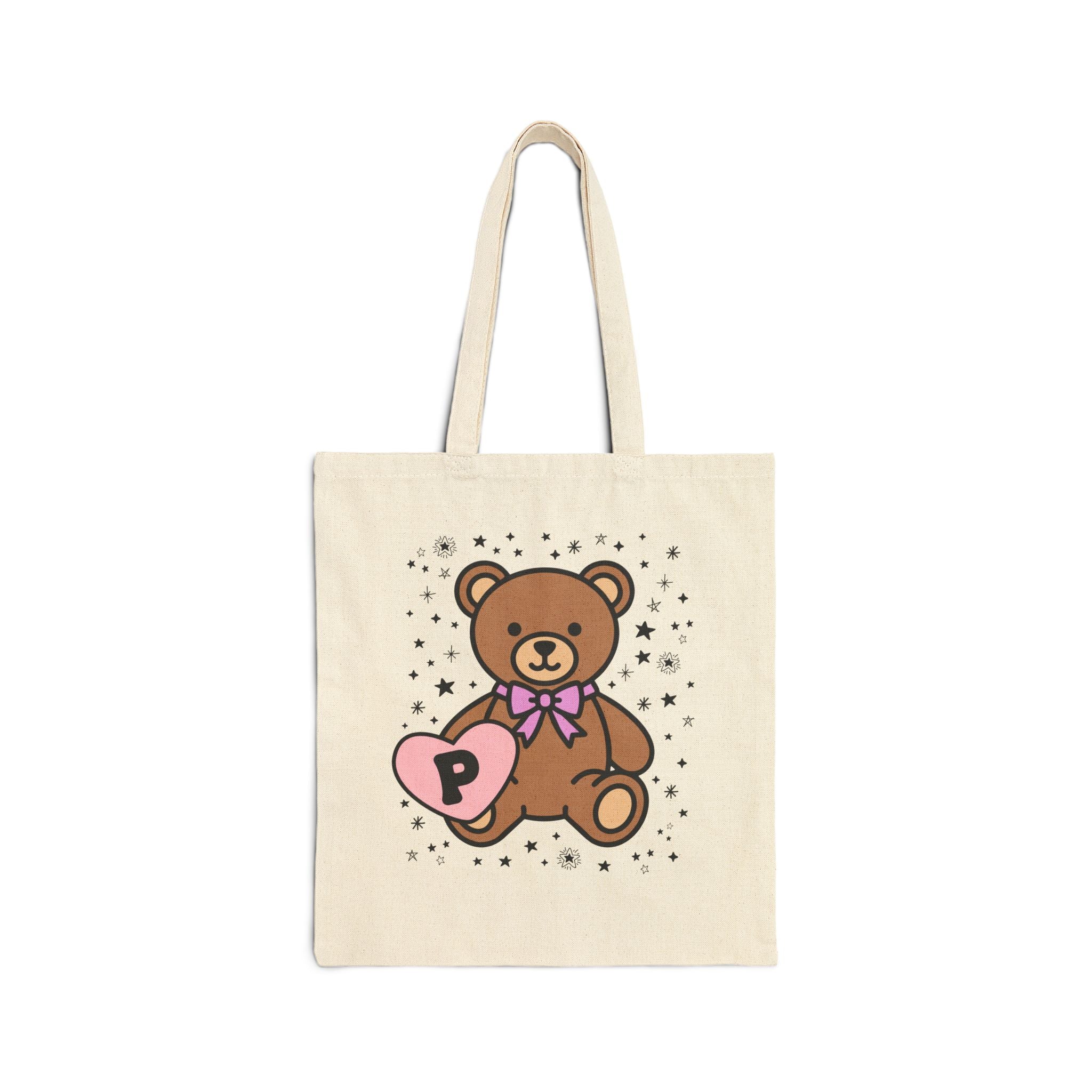 P: Bear Holding a Heart Tote Bag with Initial
