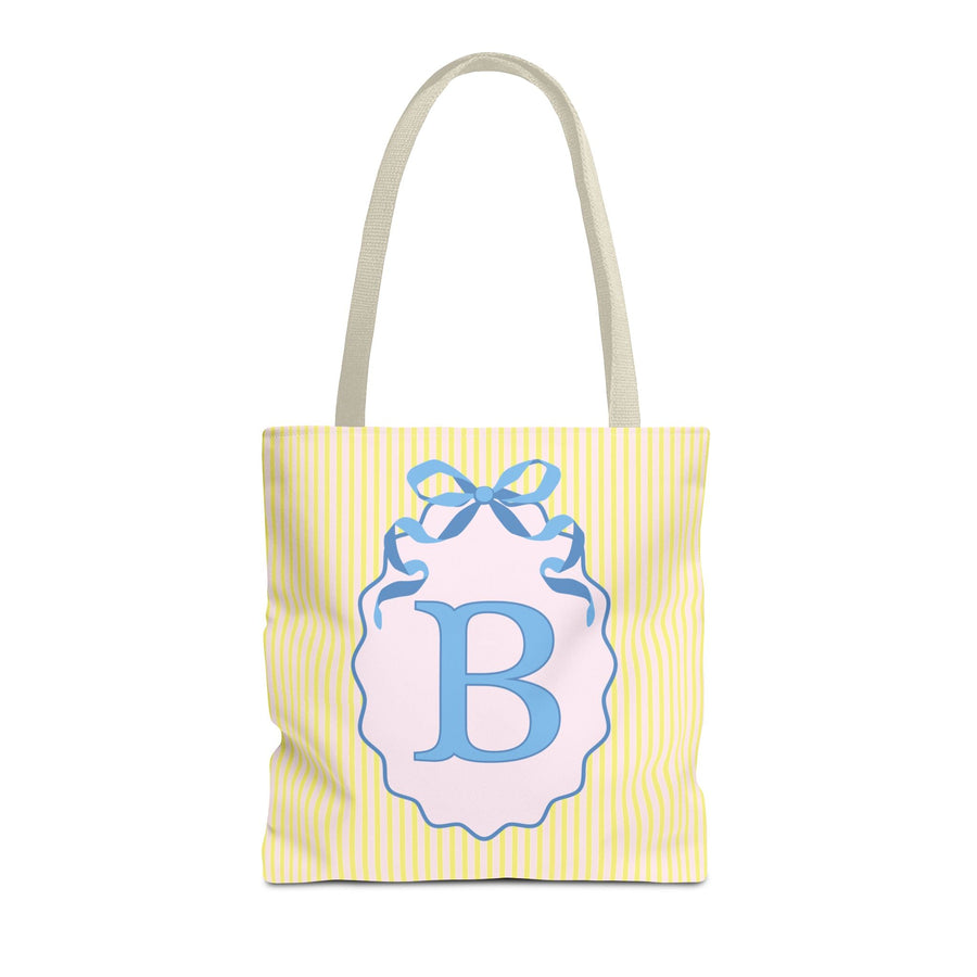 Peppy Initial Tote Bag with Initial and Cute Bow, Boho Hydrangea Flowers: B