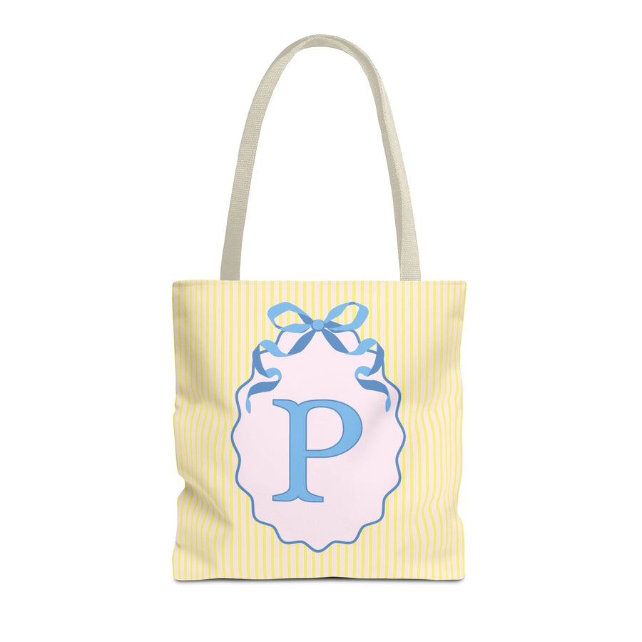 Peppy Initial Tote Bag with Initial and Cute Bow, Boho Hydrangea Flowers: P