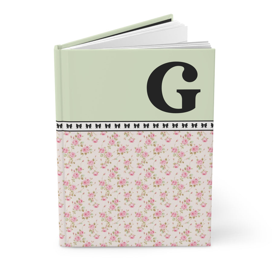Pink Floral Notebook with Initial and Bows: G