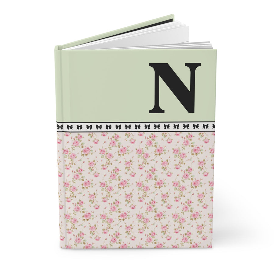 Pink Floral Notebook with Initial and Bows: N