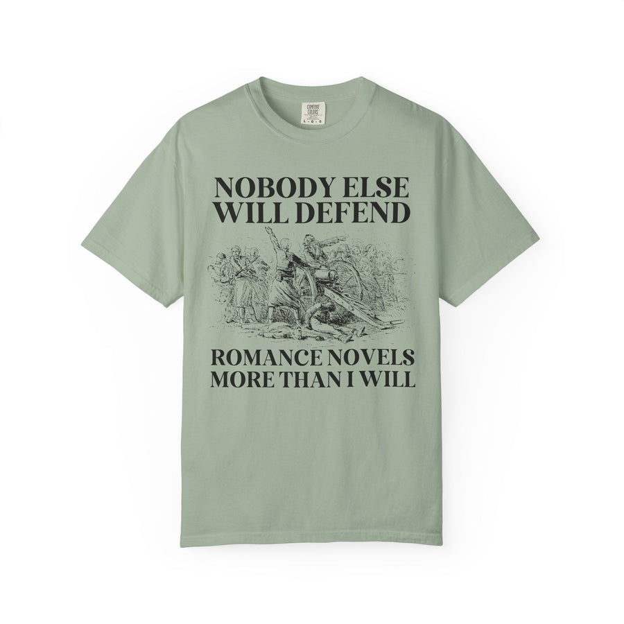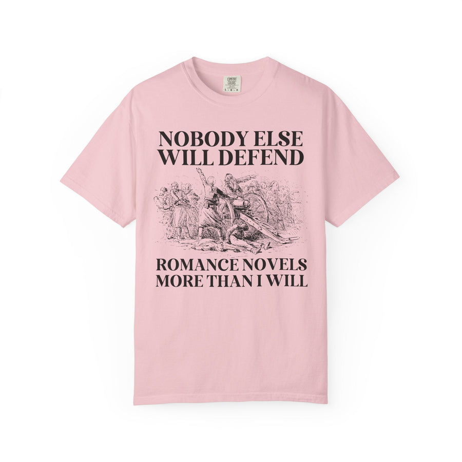 Romance Book Lover Gift Idea for Romance Reader or Writer: Nobody Else Will Defend Romance Novels More Than I Will, Funny Bookish T-Shirt